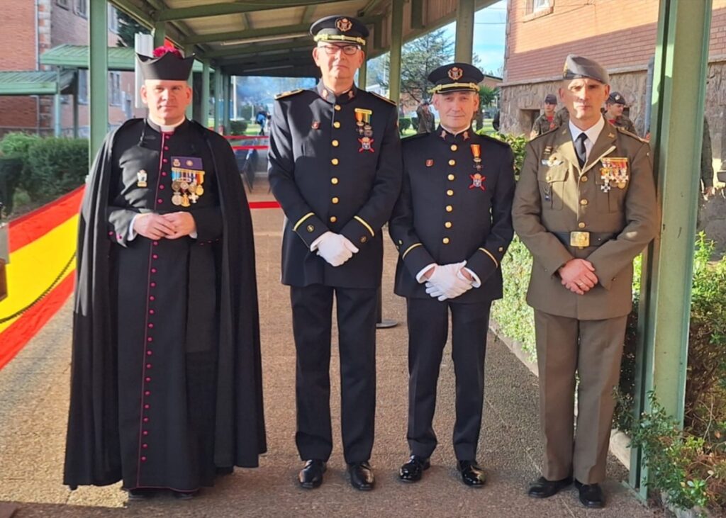 Una representación de la Orden de los Reales Tercios de España en consideración y plena solidaridad con los Monjes Benedictinos de la Abadía de la Santa Cruz del Valle de los Caídos en reivindicación de conservación del Conjunto Monumental de la Cruz mas grande del Mundo, el Faro que ilumina a la Cristiandad asiste el día 24 a la Santa Misa en la Basílica Pontificia de la Santa Cruz y posteriormente en el salón de actos de la Hospedería de la Abadía celebra la Asamblea General anual de 2025.