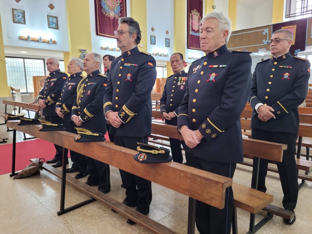Una representación de la Orden Cívico Militar de los Reales Tercios de España, Italia y Flandes del Tercio Noroeste de Asturias se unió con compañeros de la Guardia Civil y Policía a la celebración de la Santa Misa en honor de la Festividad de la Virgen del Pilar, Patrona de la Hispanidad, de la Guardia Civil, del Arma Submarina de la Armada y de la histórica División Azul